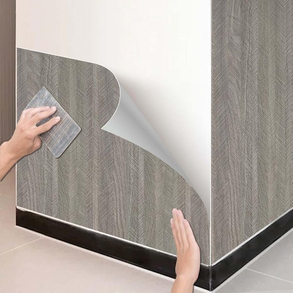 2 Rolls Gray and White Natural Wood Grain Peel and Stick Removable Vinyl Wallpaper Roll(Covers 25.48 sq.ft.)