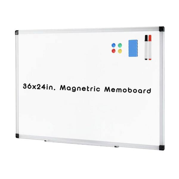 36 in. x 24 in. Whiteboard with Accessories for Home Office, White Aluminum Framed Roll Coating Magnetic Memo Board