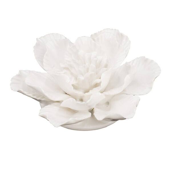 5.1 x 2.2 in. Cream White Sculpture Ceramic Flower Wall Decor, Flower Wall Decor Artificial 3D Decor for Hallway Bedroom