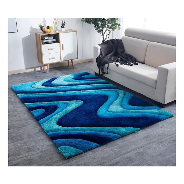 Blue wavy carpet, Fluffy Rug Plush 24 in. x 36 in. Modern Shaggy, Soft Polyester Material Tufted Area Rug