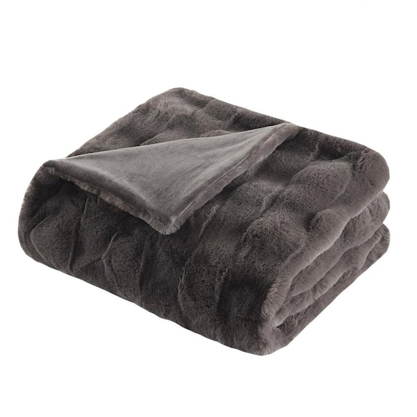 Luxury 50 in. W x 60 in. H Gray Oversized Faux Fur Throw Blanket Machine washable, Soft and Stylish