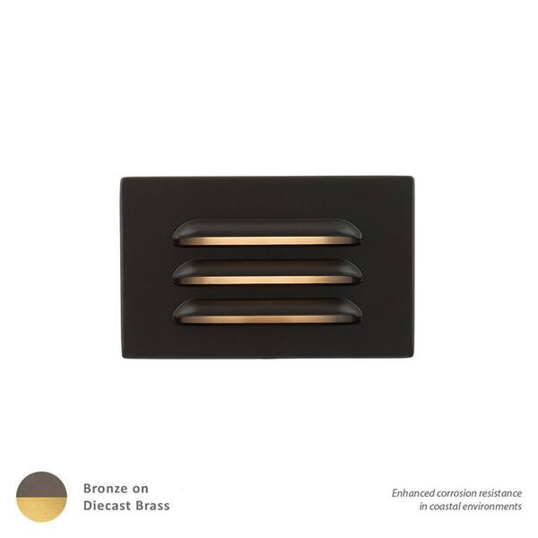 Horizontal Surface Louvered Step Light Low-Voltage Integrated LED 12-Volt Bronze on Solid Brass 2700