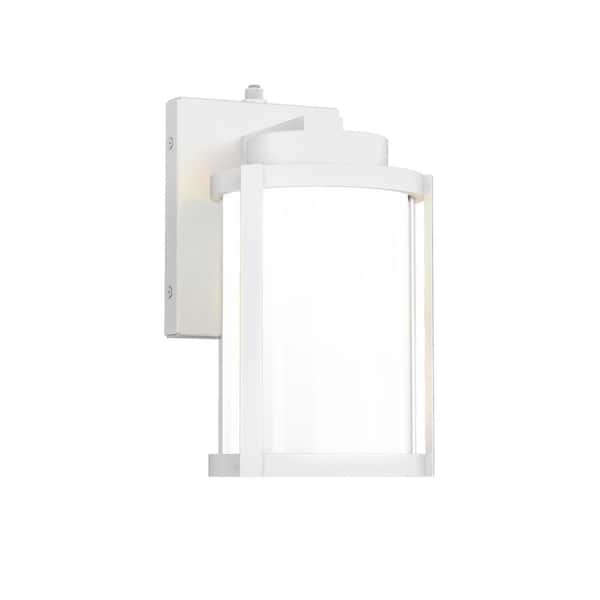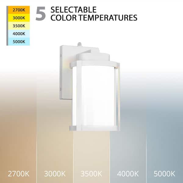 Lantern 10 in. White Indoor/Outdoor Hardwired Wall Lantern Sconce with Selectable CCT Integrated LED