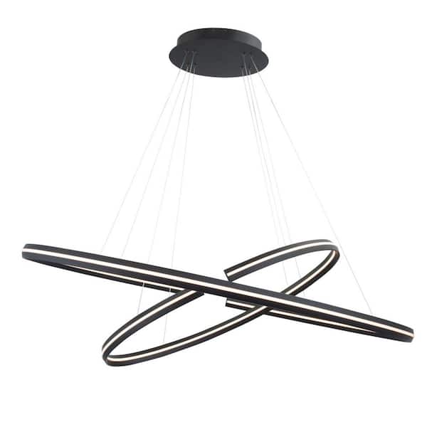 Orbit 48 in. 815-Watt Equivalent Integrated LED Black Pendant with Acrylic Shade