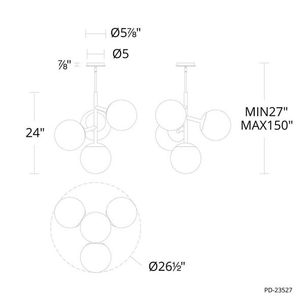 Quattro 27 in. 4-Light Black Bubble Cluster Integrated LED Pendant Light with Frosted Glass Shade-Selectable 4CCT