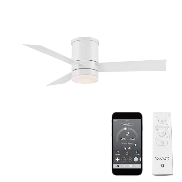 San Francisco Indoor / Outdoor 3-Blade Smart Flush Mount Ceiling Fan 44in Matte White w/3000K Integrated LED and Remote