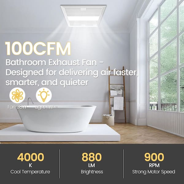 100 CFM Energy Star Bathroom Exhaust Fan with 11-Watt LED light, Quiet and Efficient Versatile Ventilation