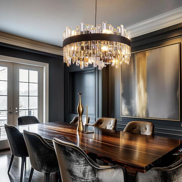 20 in. 12-Light Black Modern Crystal Chandelier with Light Dining Room or Kitchen