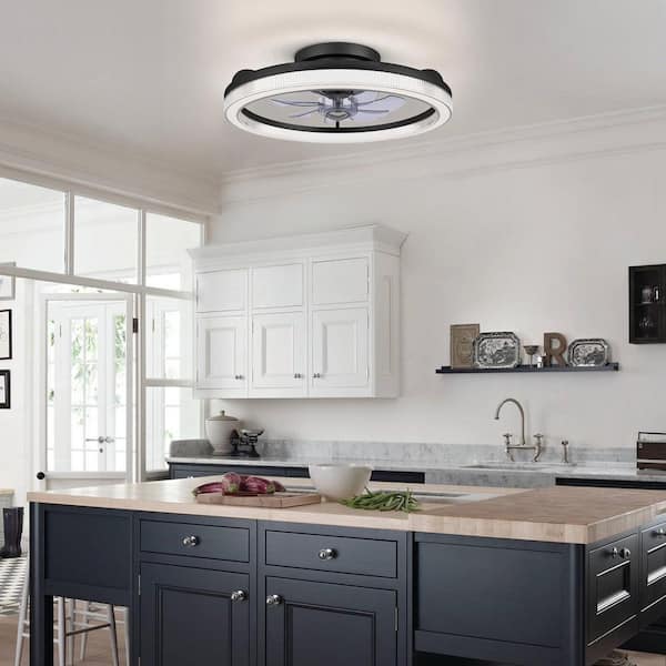 20 in. LED Indoor Black Low Profile Ceiling Fan with Dimmable Lighting Small Flush Mount Ceiling Fan with Remote
