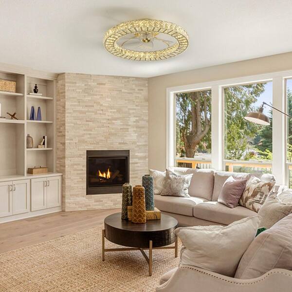22 in. Indoor Gold Low Profile Crystal Ceiling Fan with Lights with Remote Included