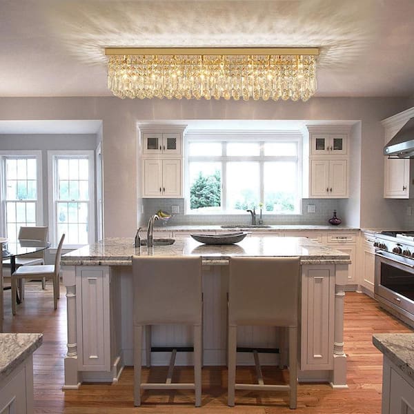 40 in. Modern 8-Light Gold Rectangle Crystal Ceiling Light Fixture Flush Mount Light Chandelier
