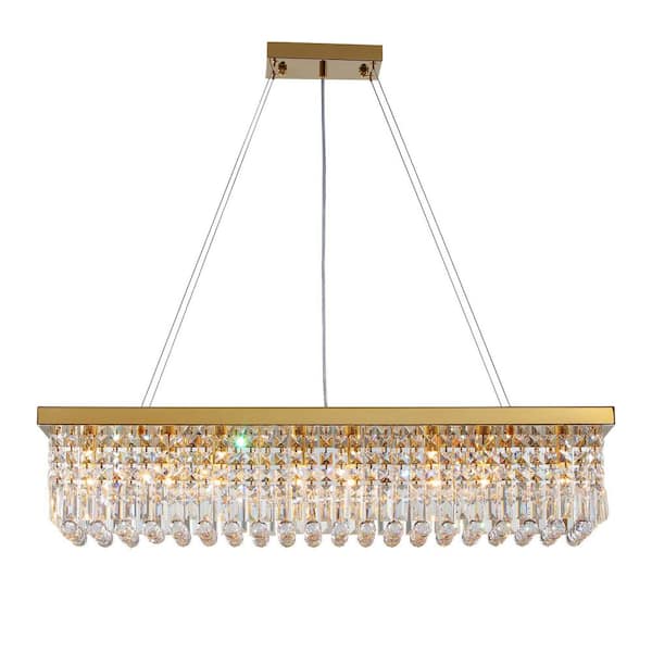 40 in. Modern 8-Lights Gold Rectangular Raindrop Crystal Chandelier for Dining Room Kitchen Island