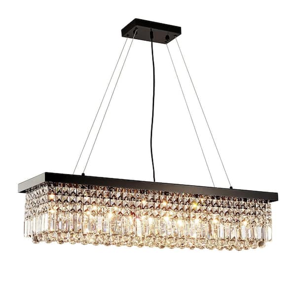 47 in. 10-Light Black Modern Crystal Chandelier for Dining Room and Living Room