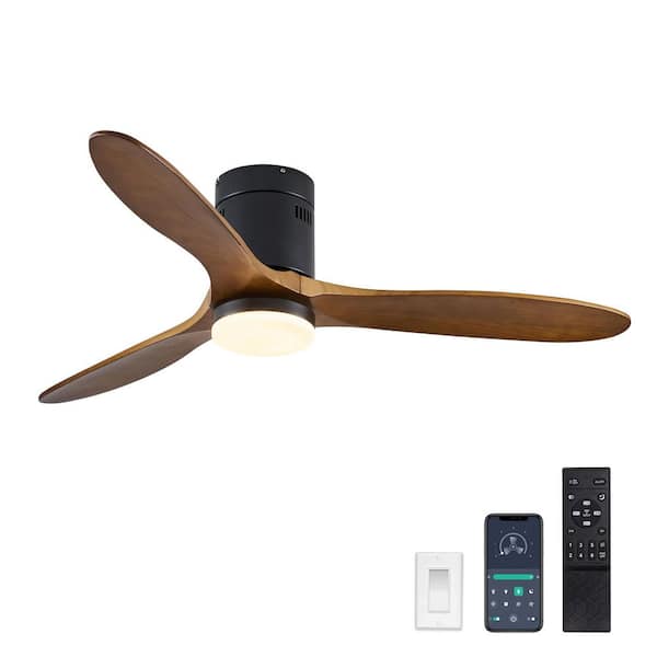 52 in. Smart LED Indoor Black Flush Mount Ceiling Fan with 3-Wood Blades, Dimmable Low Profile Ceiling Fan