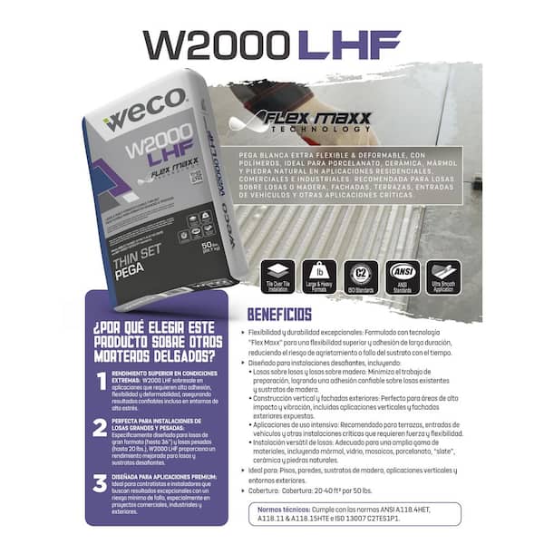 W-2000 LHF 50 lb. White Flooring Powder Mortar for Interior/Exterior Floor and Wall Tile and Stone