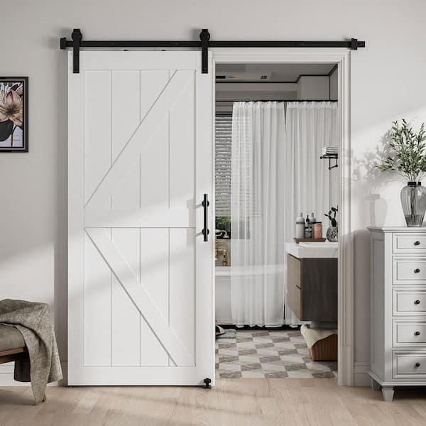 30 in. x 84 in. White K-shaped MDF Sliding Barn Door Slab with Hardware Kit