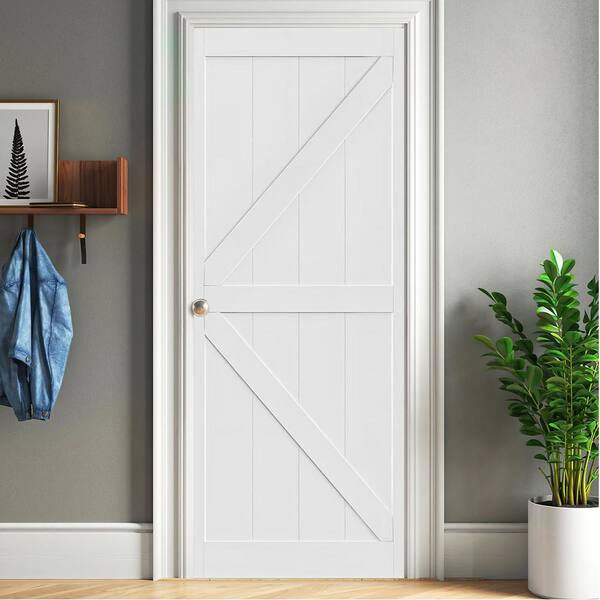 32 in. x 84 in. White Primed K Style Solid Core Wood Interior Slab Door, MDF, Barn Door Slab