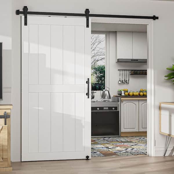 34 in. x 84 in. White H-shaped MDF Sliding Barn Door Slab with Hardware Kit