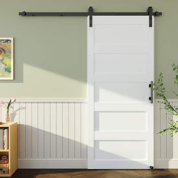 5-Panel 36 in. x 84 in. White MDF Sliding Barn Door Slab with Hardware Kit