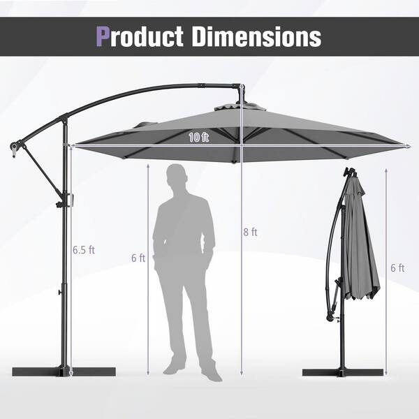10 ft. Patio Cantilever Umbrella in Gray with Stand Outdoor Tilt Umbrella with Crossed Stand
