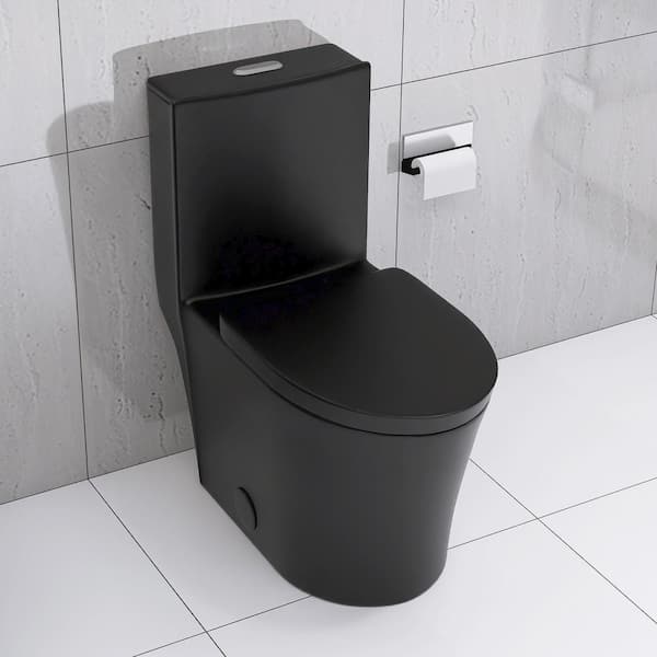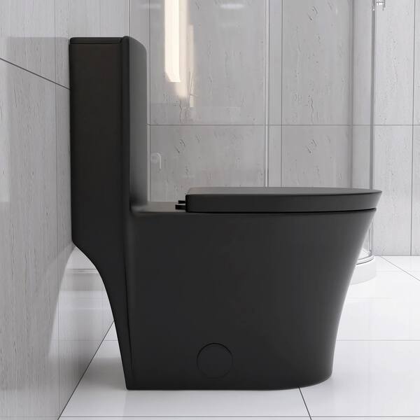 12 in. 1-Piece Toilet 1.1/1.6 GPF Dual Flush Elongated Toilet in Matte Black Seat Included