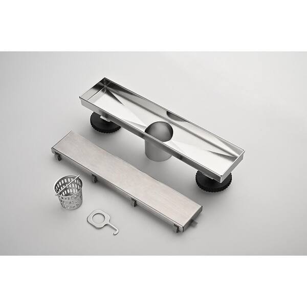 12 in. Linear Floor Stainless Steel Shower Drain with Hair Strainer and Leveling Feet in Brushed Nickel