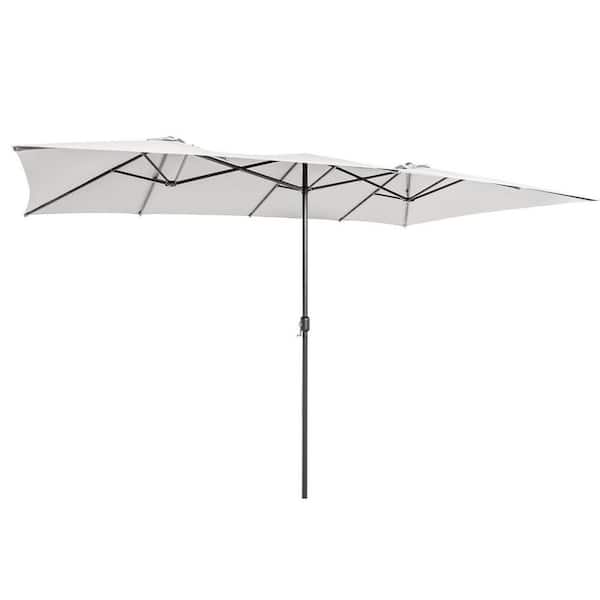 15 ft. Metal Market Patio Umbrella in Beige Sided Twin Outdoor Umbrella with Crank and Vented Tops