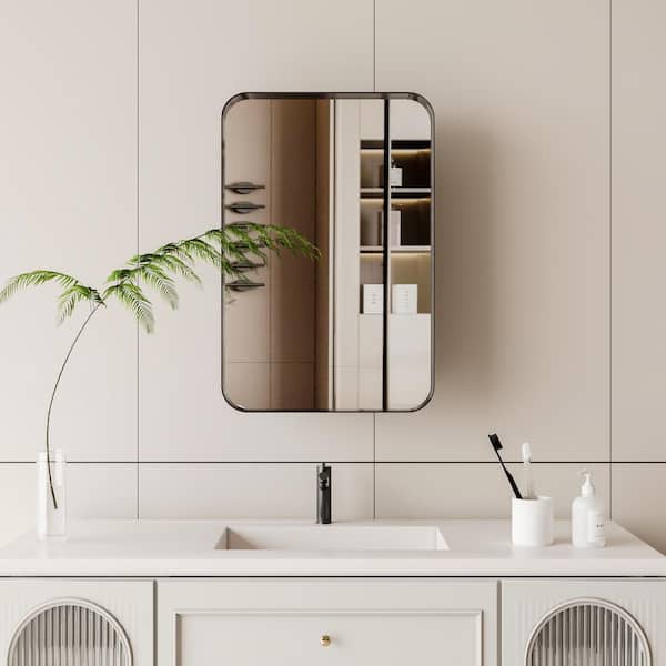 16 in. W x 24 in. H Rectangular Metal Medicine Cabinet with Mirror and Adjustable Shelves in Black