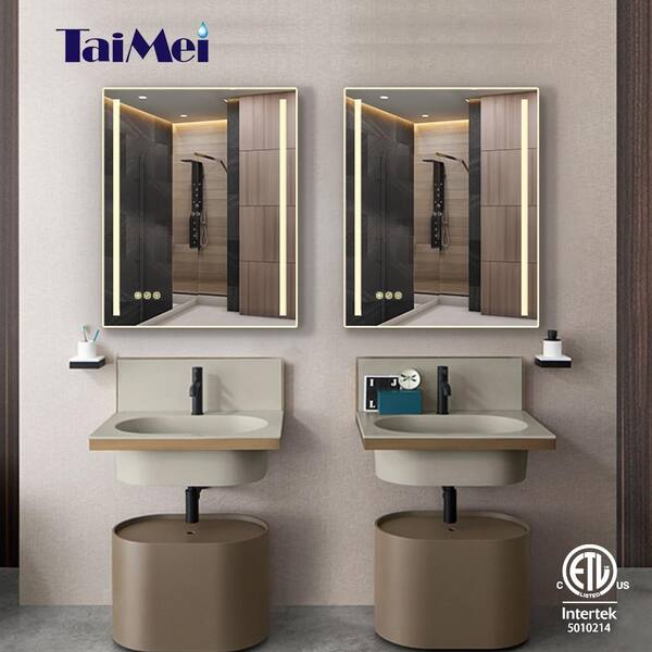 2 LED Strip 24 in. W x 36 in. H Bathroom Wall-Mounted Vanity Mirror 5 mm without Copper Mirror, Defogger: 1-Piece