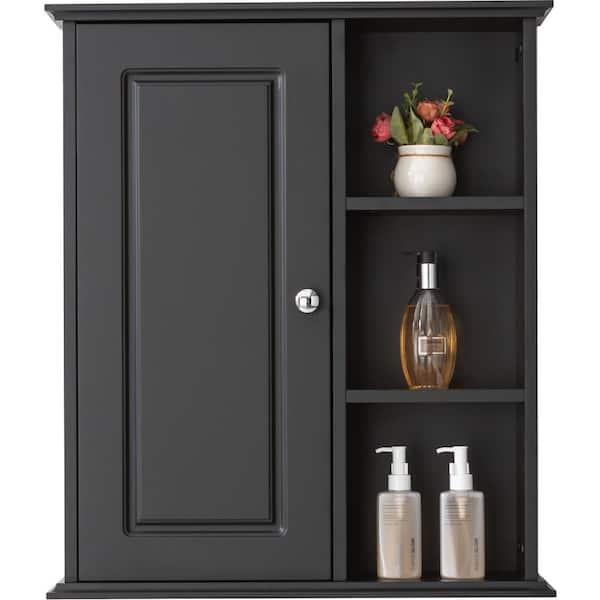 23.6 in. W x 7.1 in. D x 27.6 in. H Bathroom Storage Wall Cabinet in Black-N with Soft-Closing Hinges