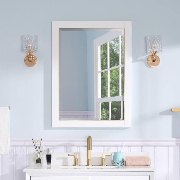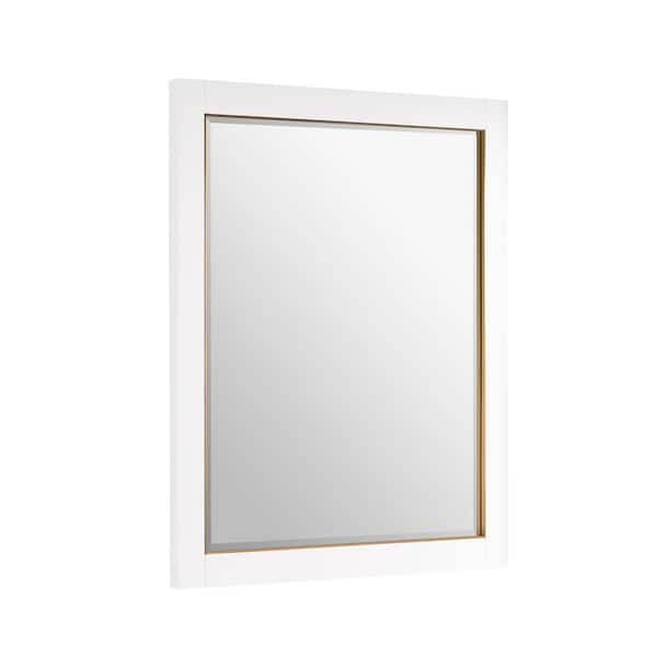 24 in. W x 32 in. H Rectangular Wood Framed Beleved Wall Bathroom Vanity Mirror in White, Vertical / Horizontal Hanging