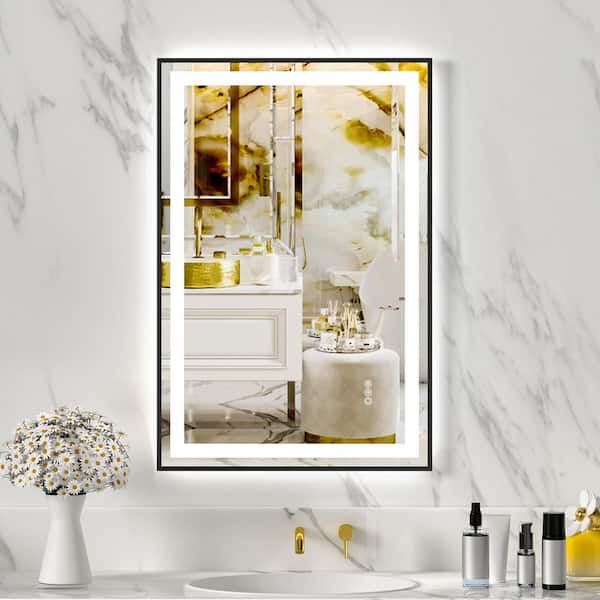 24 in. W x 36 in. H Rectangle Framed LED Anti-Fog Wall Bathroom Vanity Mirror in Black