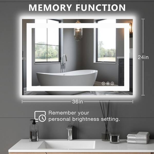24 in. W x 36 in. H Rectangular Frameless Anti-Fog LED Wall Bathroom Vanity Mirror
