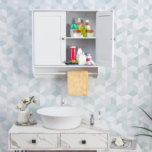 24 in. W x 8.5 in. D x 24 in. H White Bathroom Storage Wall Cabinet with Towel Bar