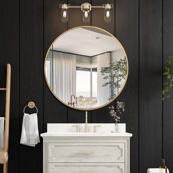 28 in. W x 28 in. H Round Metal Framed Wall-Mounted Bathroom Vanity Mirror in Gold