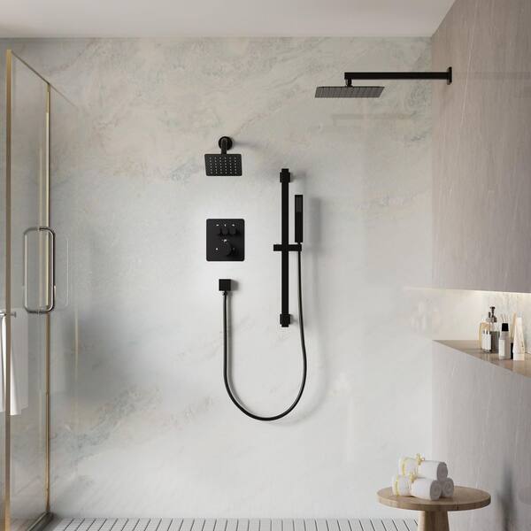 3-Function Square Wall Mount 10 in. and 6 in. Dual Shower Faucet System with Sliding Bar in Matte Black (Valve Included)