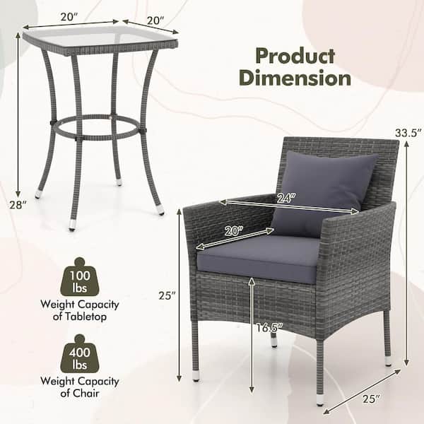3-Piece Wicker Patio Conversation Set with Gray Cushion