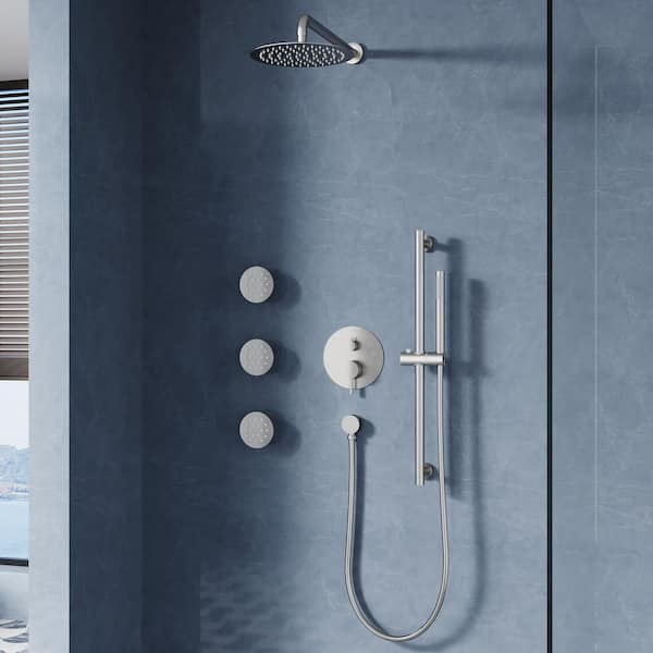 3-Spray 10 in. Square Showerhead Shower System Wall Bar Shower Kit with Hand Shower and Body Jets in Brushed Nickel
