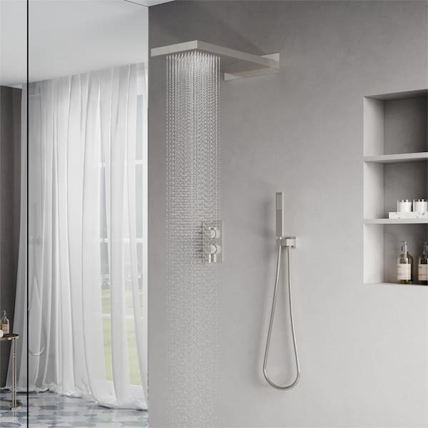 3-Spray 22 in. Large Shower Head Wall Dual Fixed and Handheld Shower Head in Brushed Nickel, Pressure Balance Valve