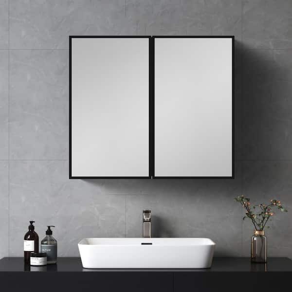 30 in. W x 26 in. H Rectangular Iron Medicine Cabinet with Mirror, Recessed or Surface Mount, Magnetic Absorption