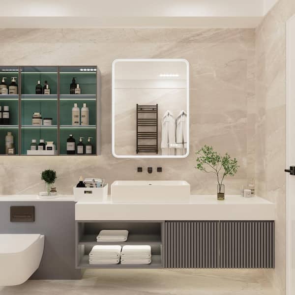 30 in. W x 36 in. H Rectangular Framed Dimmable Anti-Fog LED Wall Bathroom Vanity Mirror in Matte White, Lighted Mirror