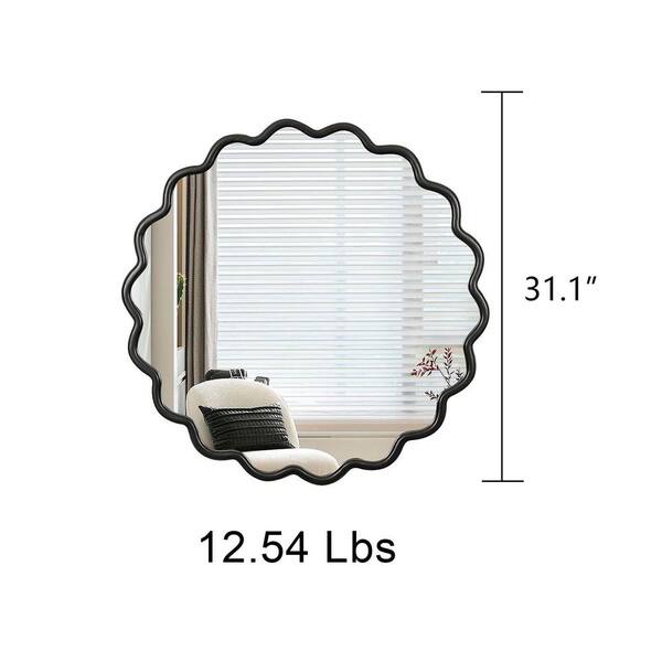 31 in. W x 31 in. H Round Art Solid Wood Framed Wall Bathroom Vanity Mirror in Brown