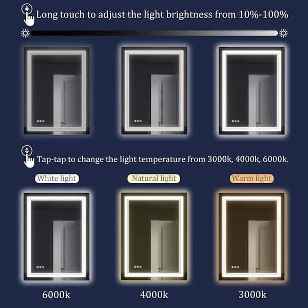 32 in. W x 24 in. H Rectangular Frameless Touch Sensor LED Light Wall Bathroom Vanity Mirror Aluminum Dimmable 3 Color
