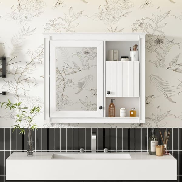 32 in. W x 28 in. H Modern Wall Mounted Rectangular MDF Medicine Cabinet with Mirror in White