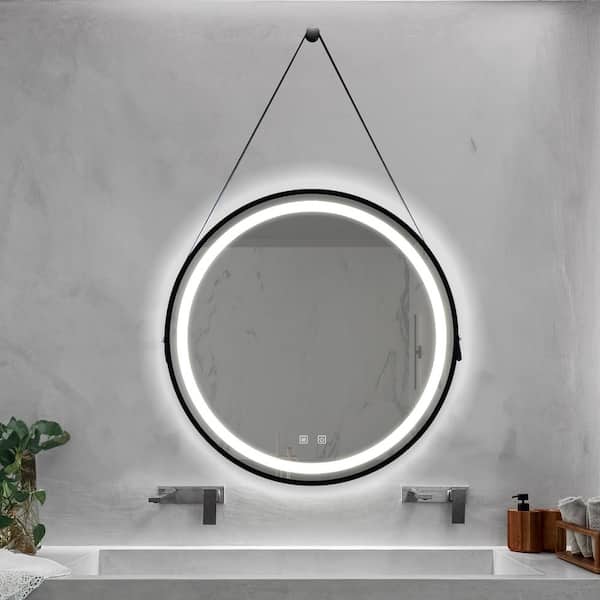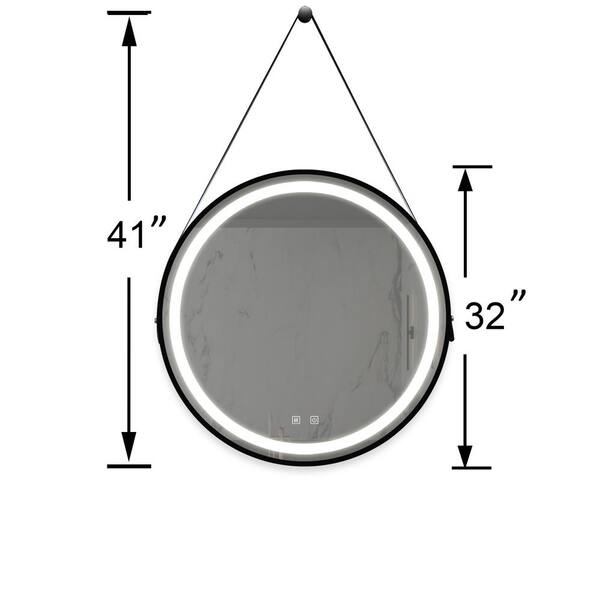 32 in. W x 41 in. H Round Aluminum Alloy Framed LED Dimmable Wall Bathroom Vanity Mirror in Black