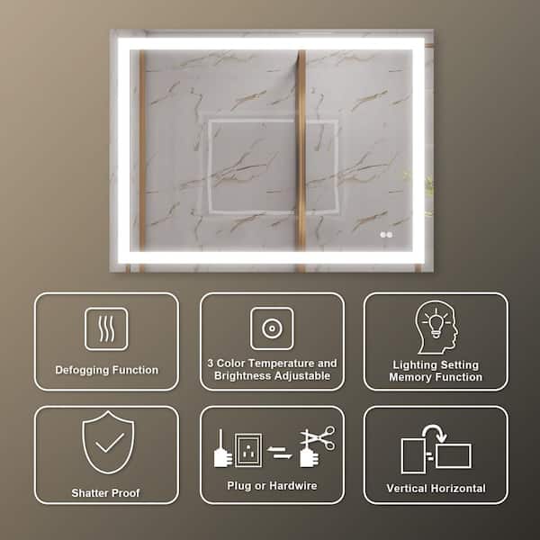 36 in. W x 48 in. H Rectangular Frameless Dimmable LED Light Wall Bathroom Vanity Mirror in Aluminum, Memory Function