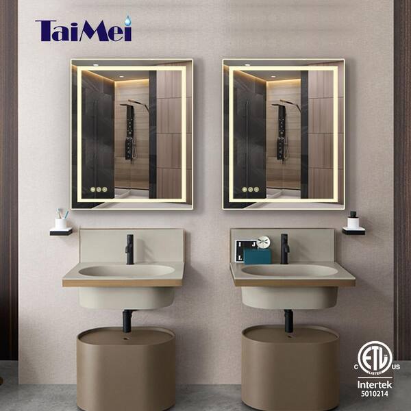 4 LED Strip 20 in. W x 30 in. H Bathroom Wall-Mounted Vanity Mirror 5 mm without Copper Mirror, Defogger: 1-Piece
