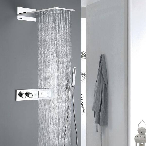 4-Spray Dual Wall Mount Fixed and Handheld Shower Head 1.59 GPM in Chrome Thermostatic Rain Waterfall Shower Faucet Set