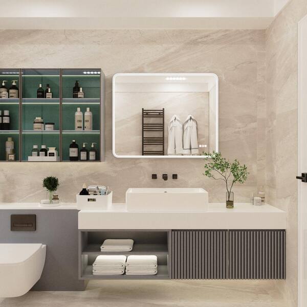 40 in. W x 32 in. H Rectangular Framed Dimmable Anti-Fog LED Wall Bathroom Vanity Mirror in Matte White, Lighted Mirror