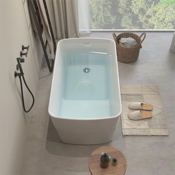 49 in. Acrylic Sit-in Design Freestanding Soaking Bathtub in Glossy White with Chrome Overflow and Drain